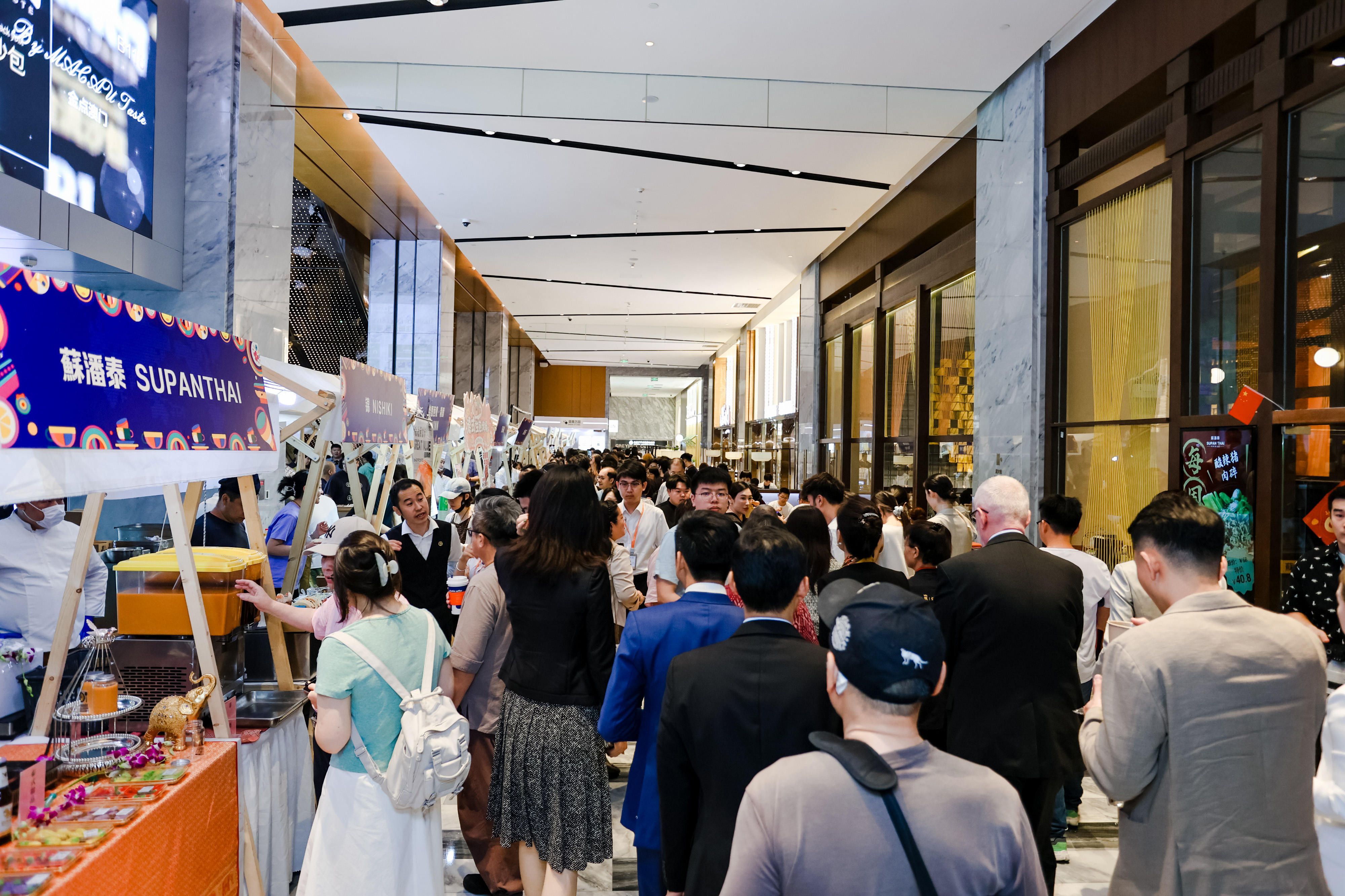 啟幕儀式結(jié)束后,嘉賓前往位于正大中心B1的無國界美食市集。本次市集涵蓋來自印度尼西亞、黎巴嫩、芬蘭等地的國際美食,匯聚近50家國際餐飲品牌,有米其林指南入選餐廳湘上湘和錦NISHIKI、泰餐蘇潘泰、越南餐廳福萬、云南菜滇香一廚等。此外,市集還提供了意大利冰淇淋、美式漢堡精釀、進(jìn)口零食等多樣選擇,為CBD商務(wù)人群打造限時(shí)味覺之旅。