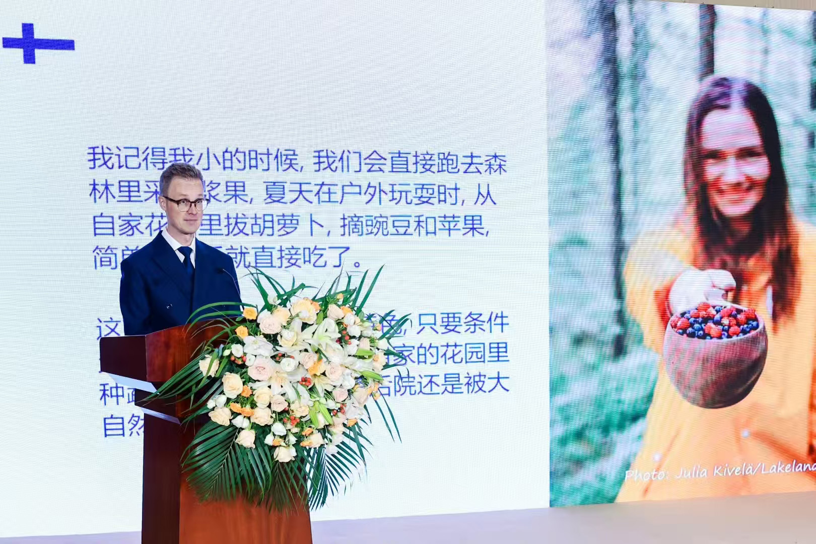 芬蘭駐華大使館政治事務(wù)參贊米高分享了芬蘭“天然的美味”飲食文化。他表示,芬蘭食物樸素純凈,源于對(duì)森林、湖泊與土地等純凈食材本源的崇尚。極簡的烹飪方式,均衡健康的飲食結(jié)構(gòu),以及全球領(lǐng)先的食品安全標(biāo)準(zhǔn),每一口天然美味,都傳遞著芬蘭人對(duì)生態(tài)的敬畏、對(duì)健康的承諾,以及對(duì)自然饋贈(zèng)的深切尊重。這不僅是舌尖的體驗(yàn),更是傳遞給世界的可持續(xù)生活智慧。