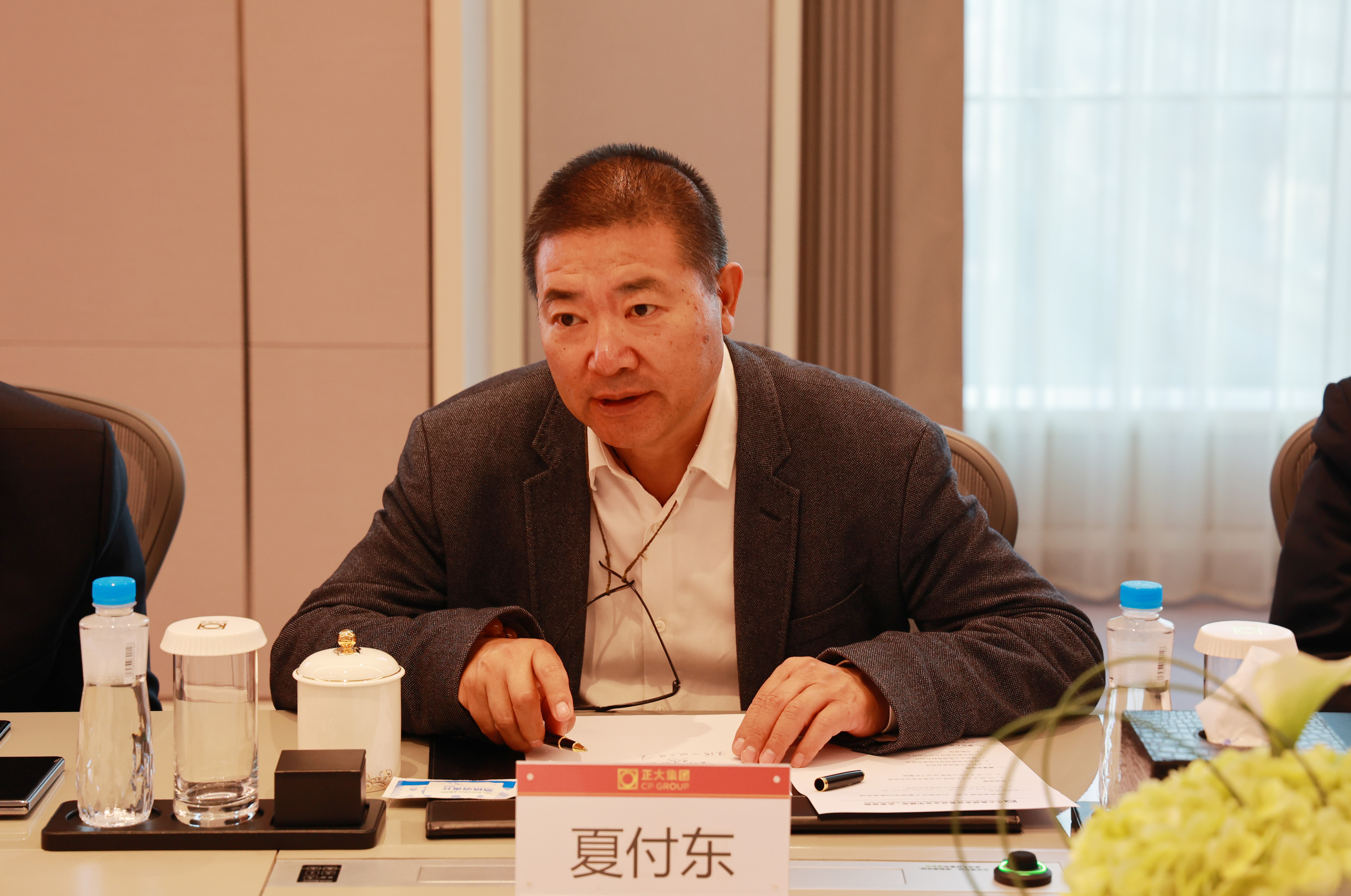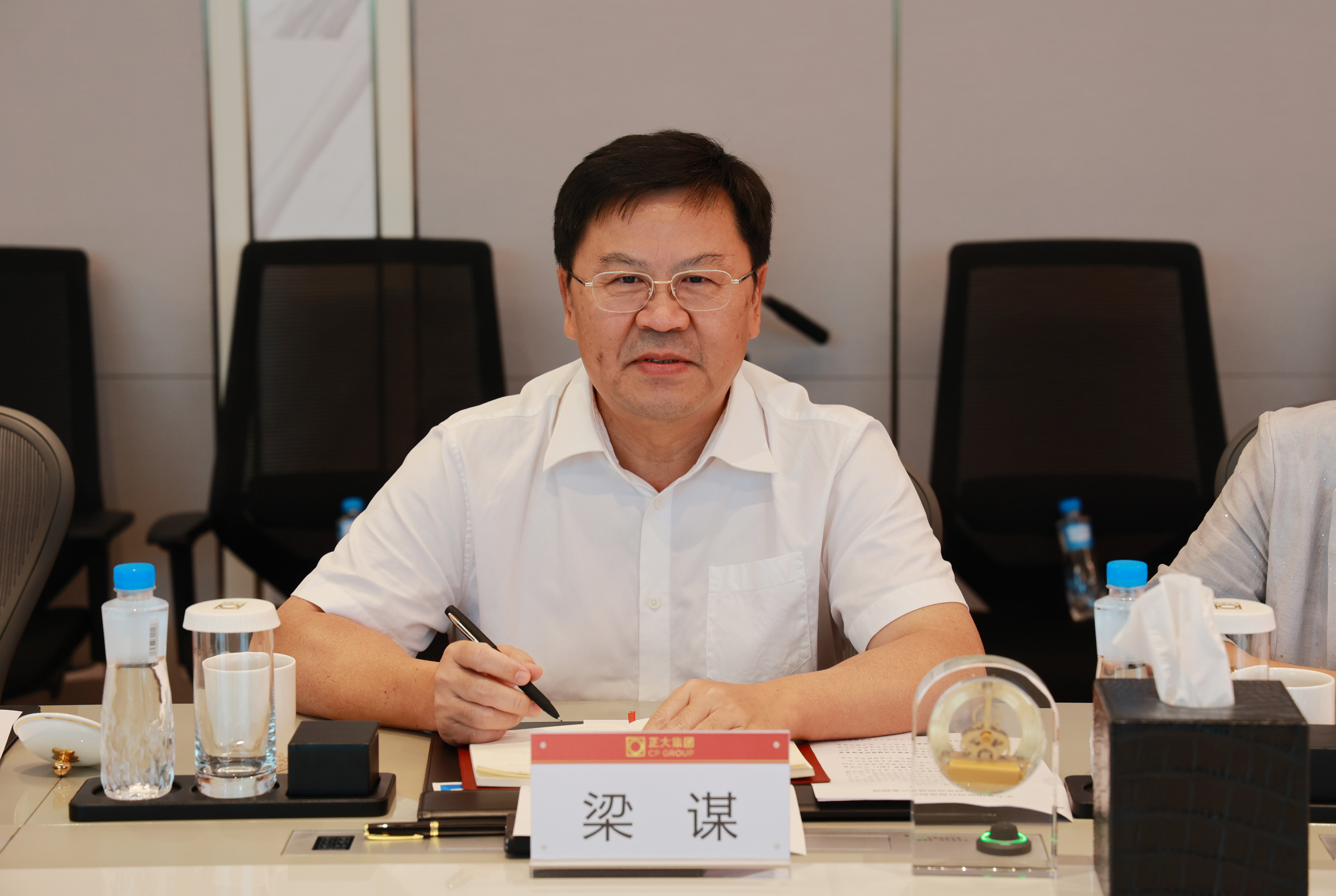 座談會上,梁謀主席十分感謝正大集團的熱情接待,并重點介紹了2025中國僑商投資(海南)大會的籌備進展和海南自貿(mào)港建設(shè)情況,期待正大集團積極參加中國僑商投資(海南)大會及相關(guān)活動。他表示,海南正加緊推進自由貿(mào)易港核心政策落地,本次中國僑商投資大會適逢海南自貿(mào)港封關(guān)運作的關(guān)鍵節(jié)點,具有重要意義。他還表示,海南立足實際,大力發(fā)展深海養(yǎng)殖產(chǎn)業(yè),正大集團在水產(chǎn)養(yǎng)殖領(lǐng)域具有顯著技術(shù)優(yōu)勢,期待雙方深化產(chǎn)業(yè)合作,攜手促進海南經(jīng)濟高質(zhì)量發(fā)展。海南省僑聯(lián)將充分發(fā)揮橋梁紐帶作用,強化政策對接和項目落地保障,為正大集團在瓊發(fā)展創(chuàng)造良好條件,誠摯邀請正大集團領(lǐng)導(dǎo)來瓊考察。