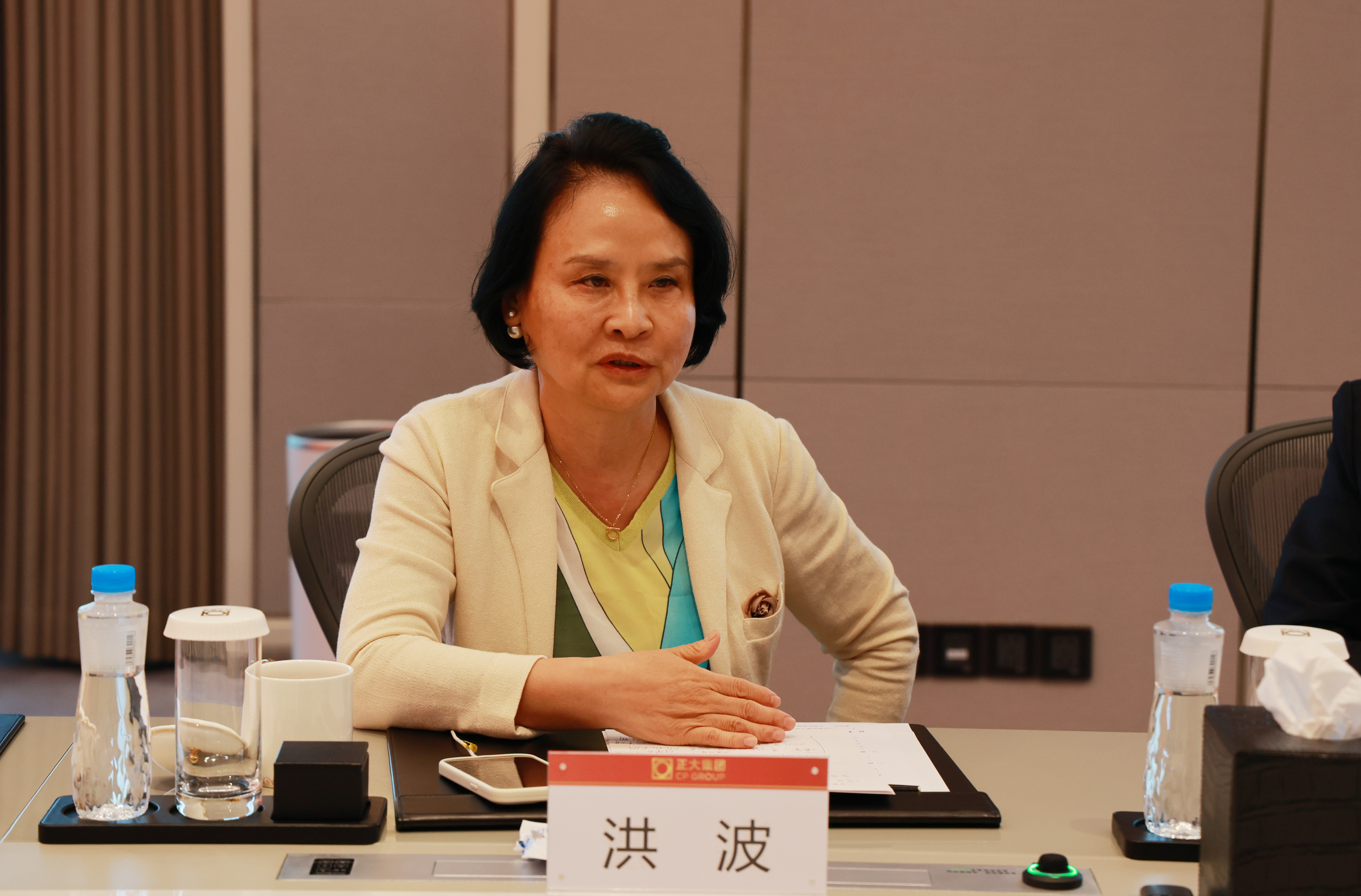 海南省僑聯(lián)黨組成員、副主席黃文慧,省僑聯(lián)外聯(lián)經(jīng)濟部部長陳曉東,省僑聯(lián)外聯(lián)經(jīng)濟部四級調(diào)研員李平;正大集團農(nóng)牧食品企業(yè)中國區(qū)資深副董事長薛增一、資深副董事長王富杰,正大集團商業(yè)地產(chǎn)企業(yè)中國區(qū)首席執(zhí)行官兼正大中心首席執(zhí)行官王曉麗等參加了座談和交流。