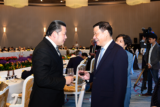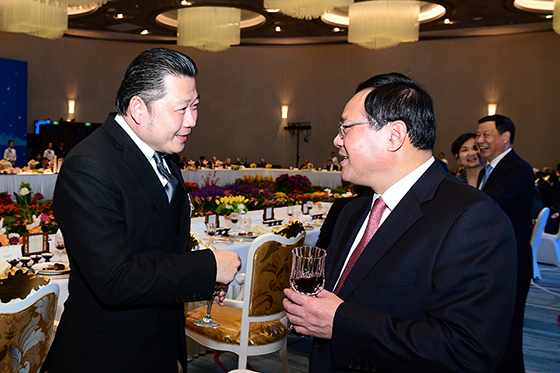 ▲上海市市長應(yīng)勇與謝吉人董事長在歡迎宴會(huì)上親切交談